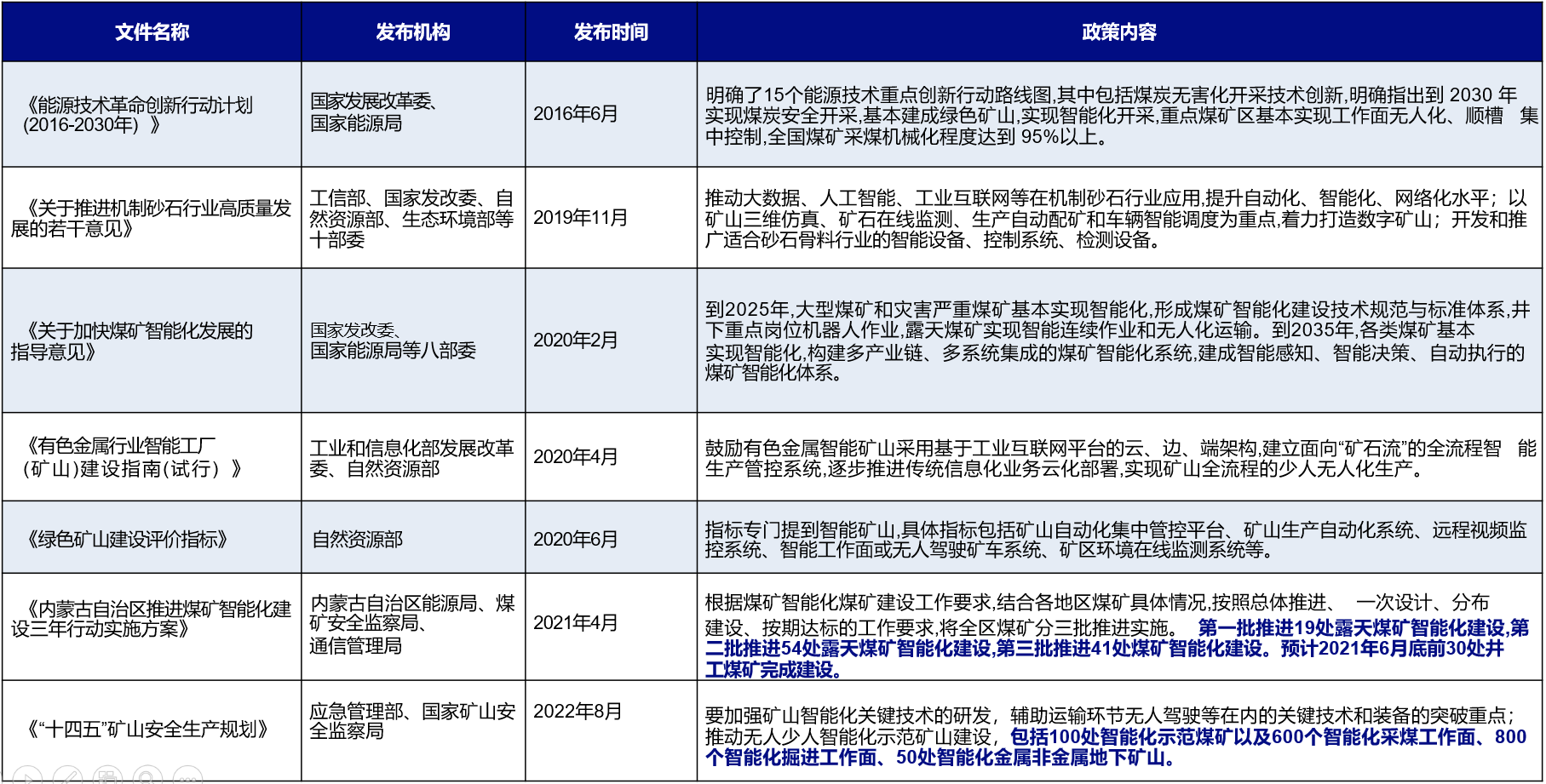 国内矿山无人驾驶技术起步晚,通过多年的人才储备、网络设施建设等,矿区无人驾驶技术取得了显著的发展。目前,各大露天矿区都在积极探索无人驾驶技术,通过对现有设备的改造,基本实现了矿区车队的无人化运输。但现阶段智慧矿山落地仍存在诸多问题,如“信息孤岛“问题、智能化程度低、重硬件投资轻软件开发、应用系统建设落后等。